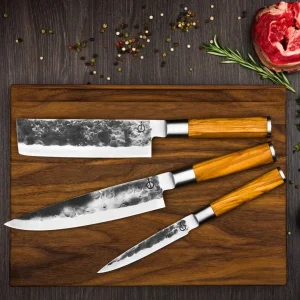 Olive 3-delig: koksmes, hakbijl en universeel mes