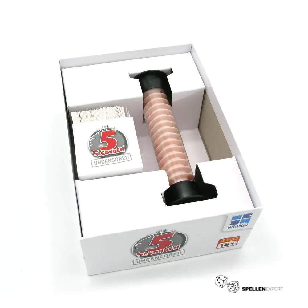 5 Seconden: Uncensored, het razendsnelle woordspel met ballen en spiraaltjes! Noem drie dingen waarvoor je je tong gebruikt. Makkelijk toch? Maar kan je dit ook binnen de 5 seconden, en durf je wel? Iedereen kijkt ja aan, vraagt zich af waarvoor jij je tong gebruikt… en terwijl jij zenuwachtig wordt, draaien de balletjes van de spiraal-timer genadeloos 5 seconden weg. Geen tijd om na te denken, dus zeg gewoon het eerste wat bij je opkomt… Als je durft!