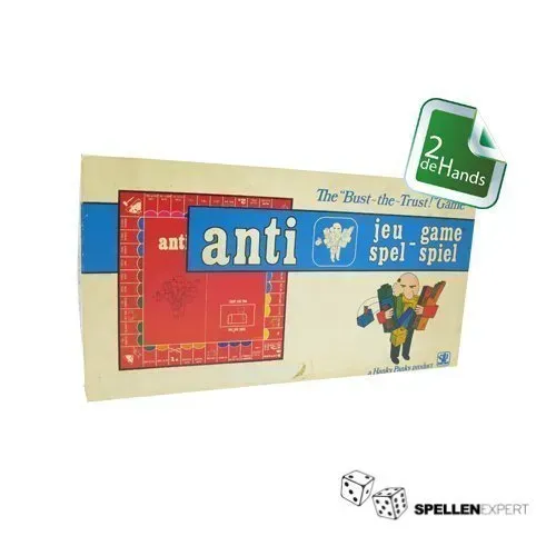 Het Anti-spel stamt uit de kortstondige periode dat het Ralph Anspach verboden was om de naam Anti-Monopoly te voeren. Daarom heeft deze “vechter tegen het Charles Darrow verzinsel” in Amerika een 40.000 spellen Anti-Monopoly van de markt moeten halen. Hij ging voort met hetzelfde spel onder de naam anti.