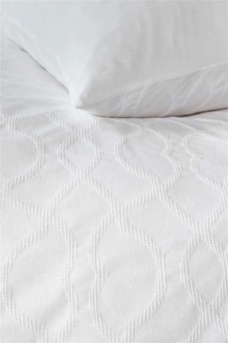 Der Bettbezug Milky hat ein grafisches Waffelmuster auf der Vorderseite des Bezuges. Die Rückseite ist einfarbig weiß und besteht aus 100% Baumwolle. Die Kissenbezüge haben das gleiche Muster wie der Bettbezug.
