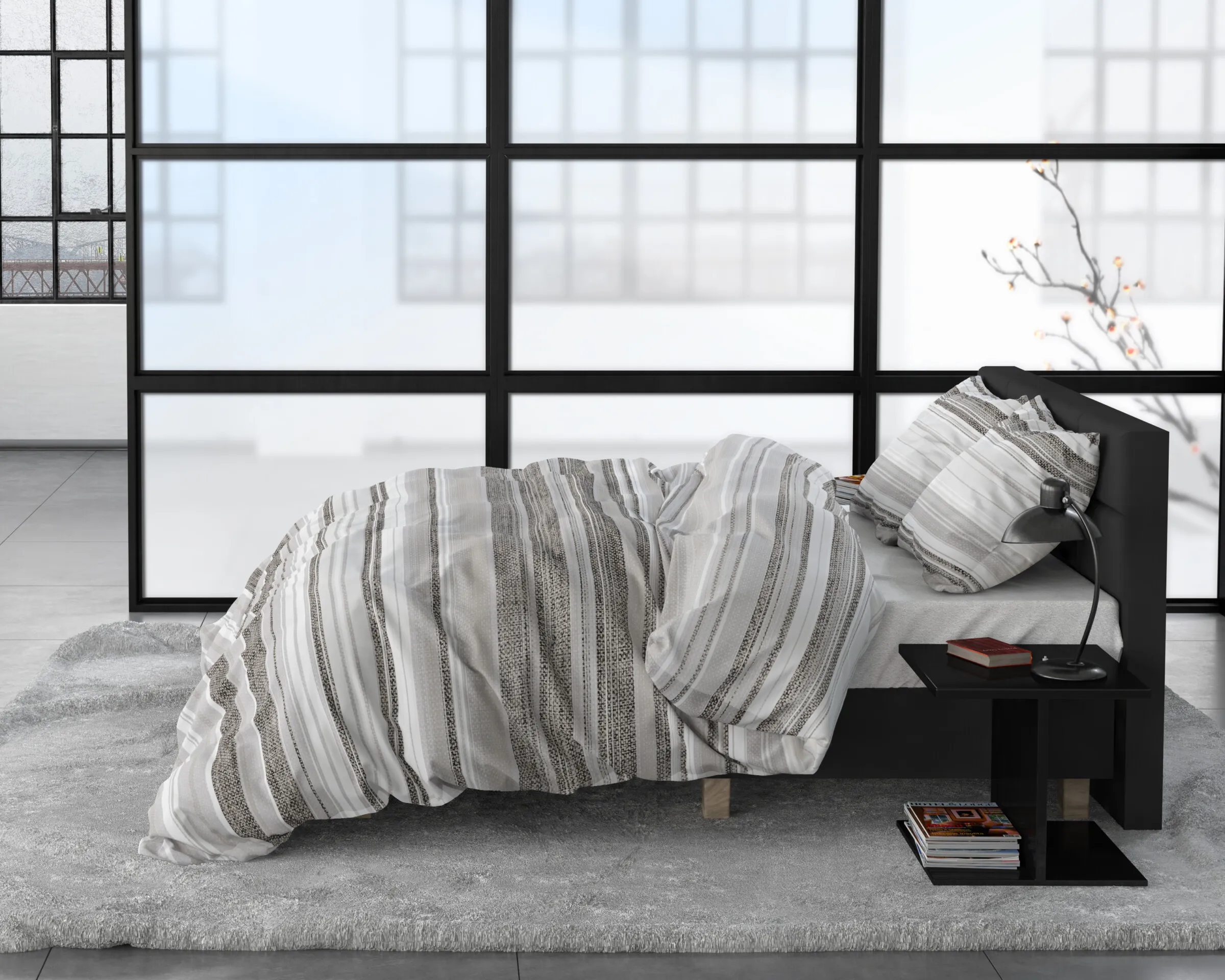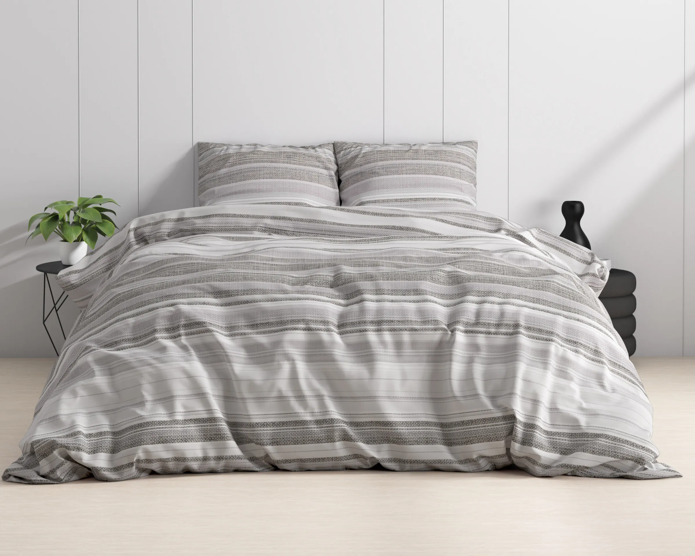 Verleihen Sie Ihrem Schlafzimmer mit dem Bettbezug Colin einen beruhigenden und heiteren Look. Das horizontale Streifendesign ist in verschiedenen Grautönen gehalten und passt hervorragend in ein Schlafzimmer im Landhausstil. Mit einem Satz zusätzlicher Kissen und einer Tagesdecke können Sie eine luxuriöse Atmosphäre schaffen, die zum Entspannen einlädt.