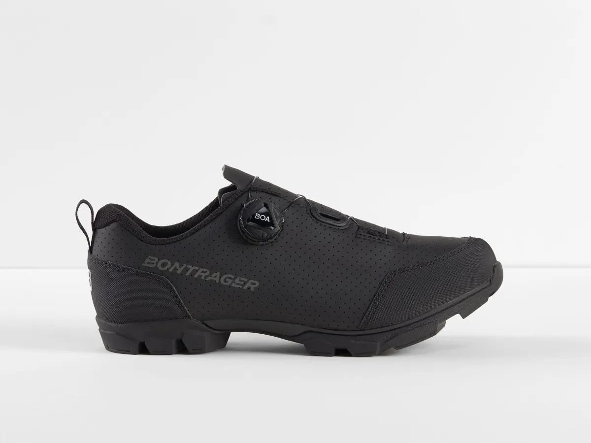 Een allround mountainbikeschoen met Tachyon rubberzool voor betrouwbare grip tijdens het lopen. – De inForm Race leest biedt een ruimere, prestatiegerichte pasvorm – Een enkelvoudige BOA® L6 draaisluiting voor eenvoudige en precieze afstelling van de pasvorm – Sterk en geperforeerd synthetisch bovenmateriaal is bestand tegen zwaar offroad-gebruik – Duurzame GnarGuard rubber-coating beschermt tegen schuurplekken en steenslag – Nylon composiet Bronze Series zool is stijf, maar buigzaam genoeg om mee te lopen – Stijfheidsindex: 6 op 14 – Tachyon rubber buitenzool geeft veel grip op elke ondergrond – Geschikt voor tweebouts SPD-schoenplaatjes Blijf bij je leest Gevormd rond de Bontrager inForm Race-leest voor een iets ruimere, prestatiegerichte pasvorm. Passend in een handomdraai Voorzien van een BOA® L6 draaisluiting voor gemakkelijke fijnafstelling en een nauwsluitende pasvorm. Voor je zwaarste ritten Het sterke, geperforeerde bovenwerk van synthetisch materiaal is bestand tegen zwaar offroad-gebruik. Perforaties over het gehele bovenwerk voor extra ademend vermogen op warme zomerdagen. Slijtvast De slijtvaste en schuurbestendige GnarGuard rubbercoating zit stevig op de schoen gelijmd en beschermt tegen vuil en schuurplekken. Krachtig doortrappen De nylon composiet Bronze Series zool is licht en stijf en biedt een uitstekende krachtoverbrenging tijdens lange, zware ritten. Stijfheidsindex: 6 op 14 Verbeterde grip De Tachyon buitenzool met robuuste rubber noppen biedt uitzonderlijke grip en tractie op elke ondergrond. Een sterke verbindin Geschikt voor tweebo Geschikt voor spikes Eenvoudige montage van spikes mogelijk, voor extra grip op de ruwste en modderigste trails.