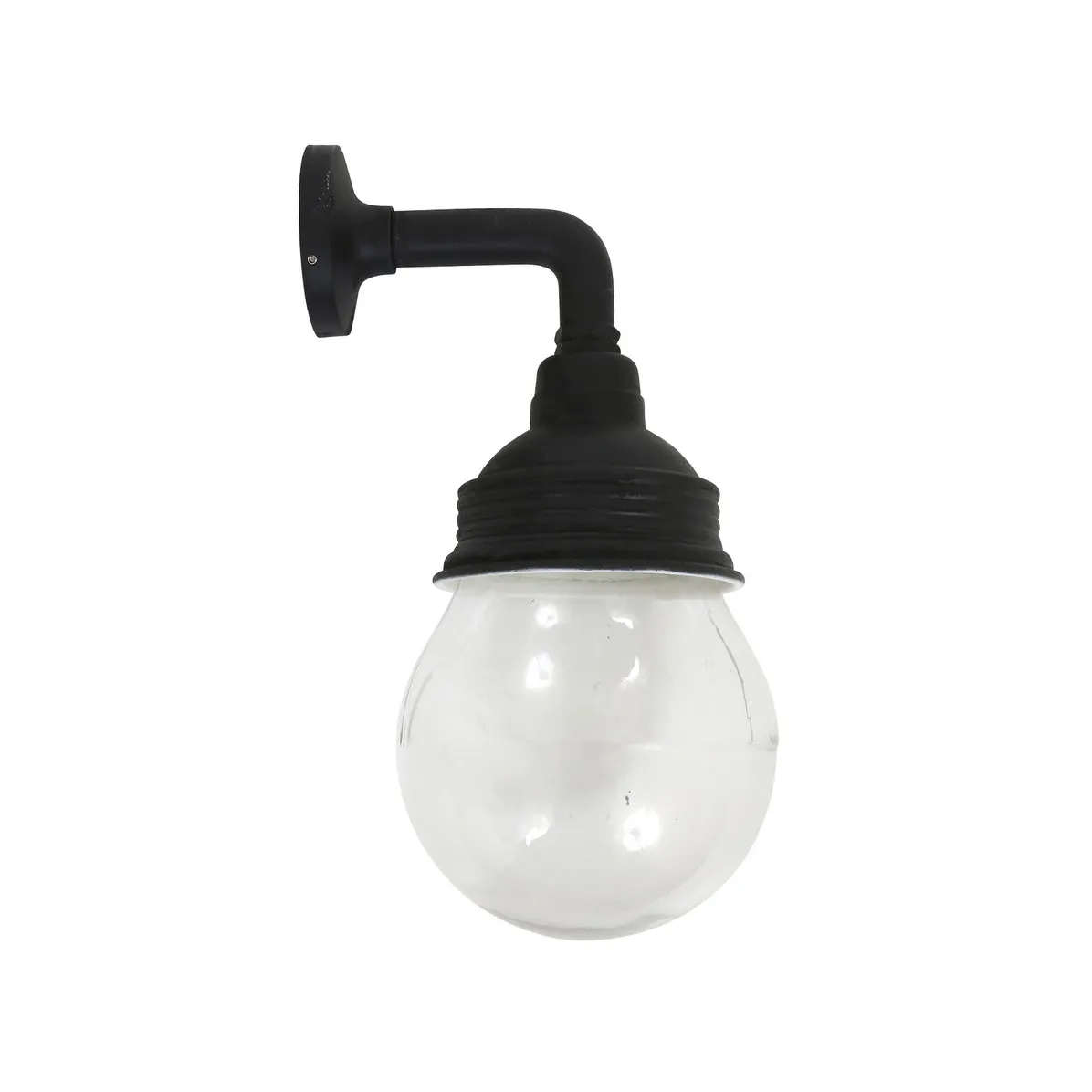 Een alleskunner voor buiten (IP54) maar ook bijvoorbeeld voor in je keuken of slaapkamer. Van alle markten thuis dus. Een unieke glazen buitenlamp met een antiek zwarte basis. Dat maakt ‘m een tikje industrieel maar toch stijlvol en robuust. Ben je op zoek naar een no nonsense look met uitstraling, dan is dit je lamp. Hang er bijvoorbeeld 2 boven je aanrecht van je keuken met lichte of aluminium accenten. Uitermate sfeervol onder je veranda en helemaal goed voor in je nieuwe badkamer. De diameter van deze buitenlamp zwart met glas is 15cm (het glas) en de hoogte is 35cm. Het muurplaatje heeft een diameter van 8cm. De wandlamp heeft een normale fitting (E27) en kan prima met LED verlichting. Het glas van de lamp is helder, dus doorzichtig. Kies daarom bijvoorbeeld voor een retro LED lamp om je lamp helemaal tot zijn recht te laten komen. Natuurlijk ook schitterend in je gang of hal. We zien ‘m ook steeds vaker terug als badkamerlamp.