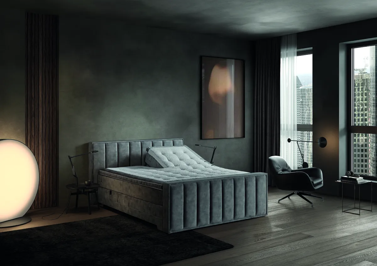 Erlebe ultimativen Luxus mit der elektrischen Funktion des Newark Boxspring, die du mit einer kabellosen Fernbedienung steuern kannst, während du bequem liegst.
