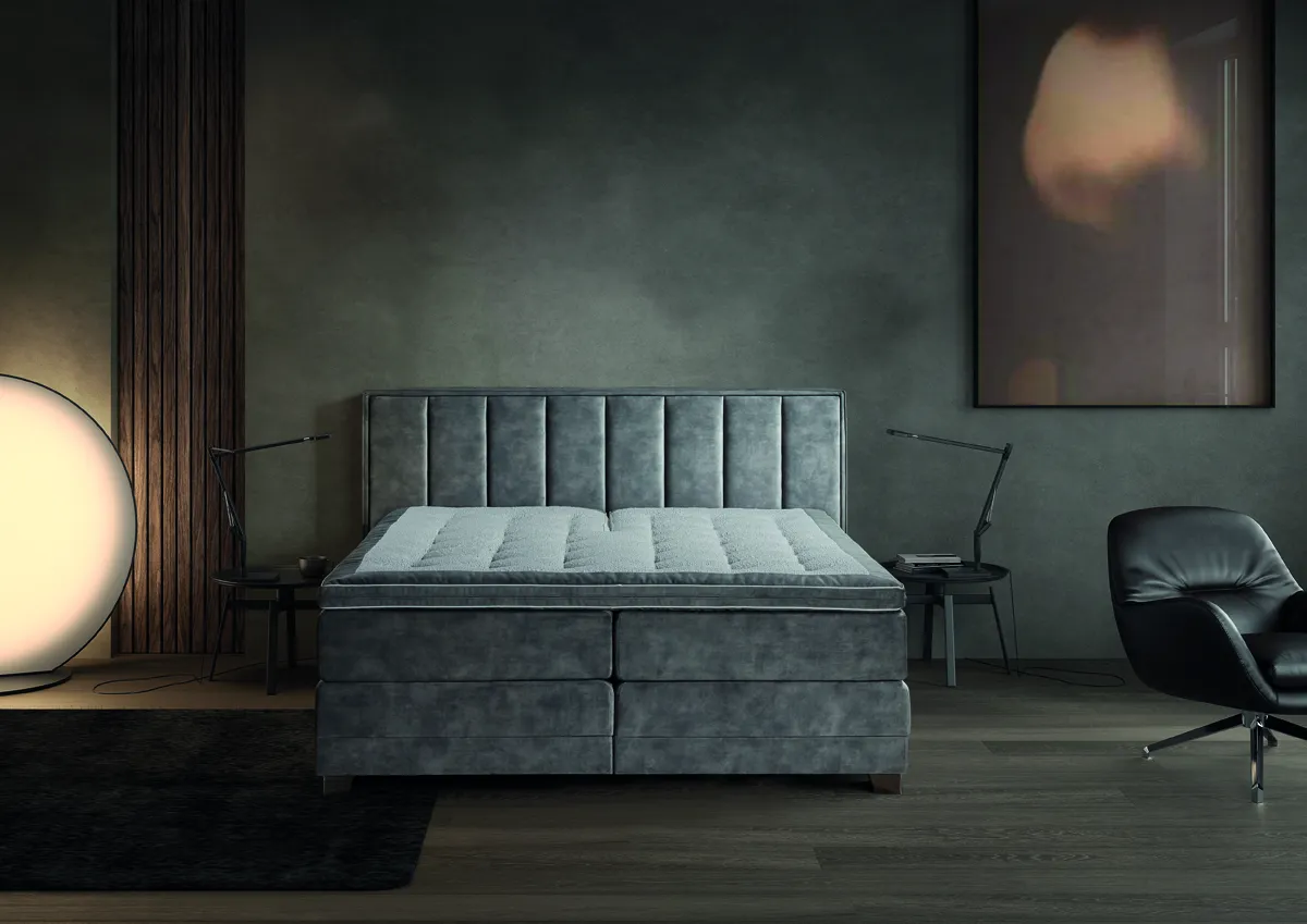 Entdecke das Newark Boxspring, eine perfekte Mischung aus Stil und Komfort. Jeder Aspekt dieses Boxspringbetts strahlt Luxus und Modernität aus und macht es zu einer wertvollen Ergänzung für jedes Schlafzimmer. Gestalte das Newark Boxspring Schritt für Schritt nach deinen eigenen Vorlieben, einschließlich der Wahl der Matratze, der Farbe, des Kopfteils und der Füße.