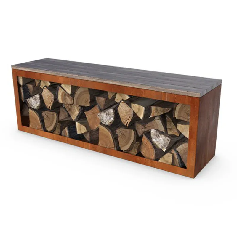 Met een breedte van 150cm is er ruim plaats voor 3-4 personen en uiteraard voor een hoop hout. Ontvang je gasten in stijl met deze prachtige bank. De bank bestaat uit stevig, cortenstaal en weerbestendig hout. Ze kan dus het hele jaar door buiten blijven staan en haar schoonheid behouden. Uiteraard hout deze bank ook je hout droog van zowel neerslag als bodemvocht.