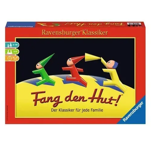 Hoedje jagen, Pas op je hoedje of Rapidio genaamd is een taalvrij spel (spel bestaat uit afbeeldingen). Dit is een Duitse versie, maar prima speelbaar als je geen Duits kent aangezien wij er de Nederlandse spelregels erbij leveren.