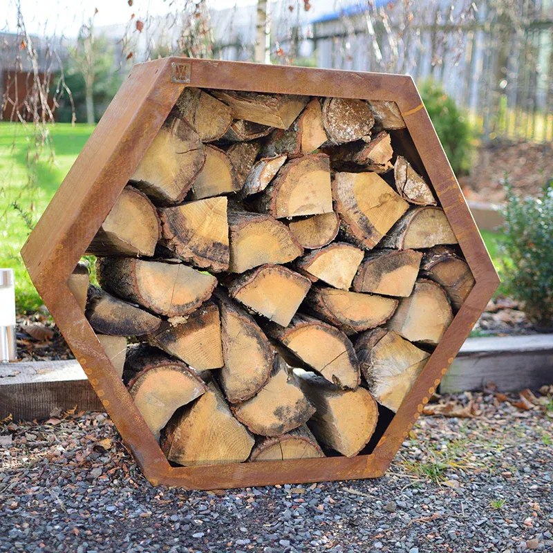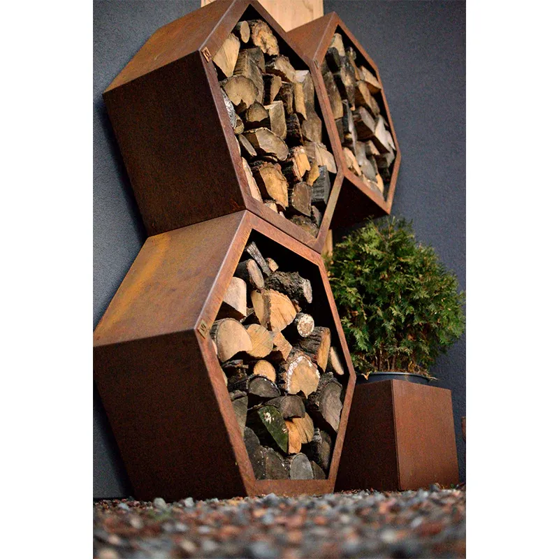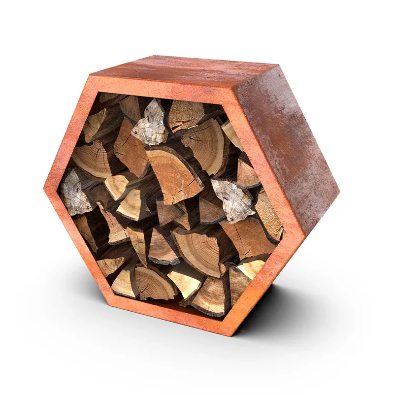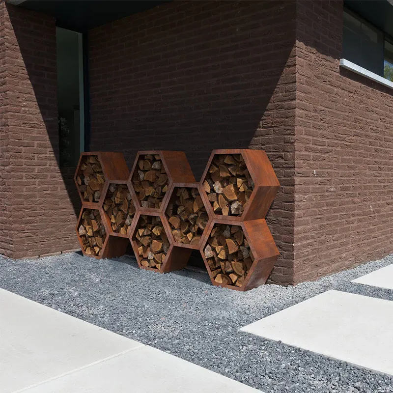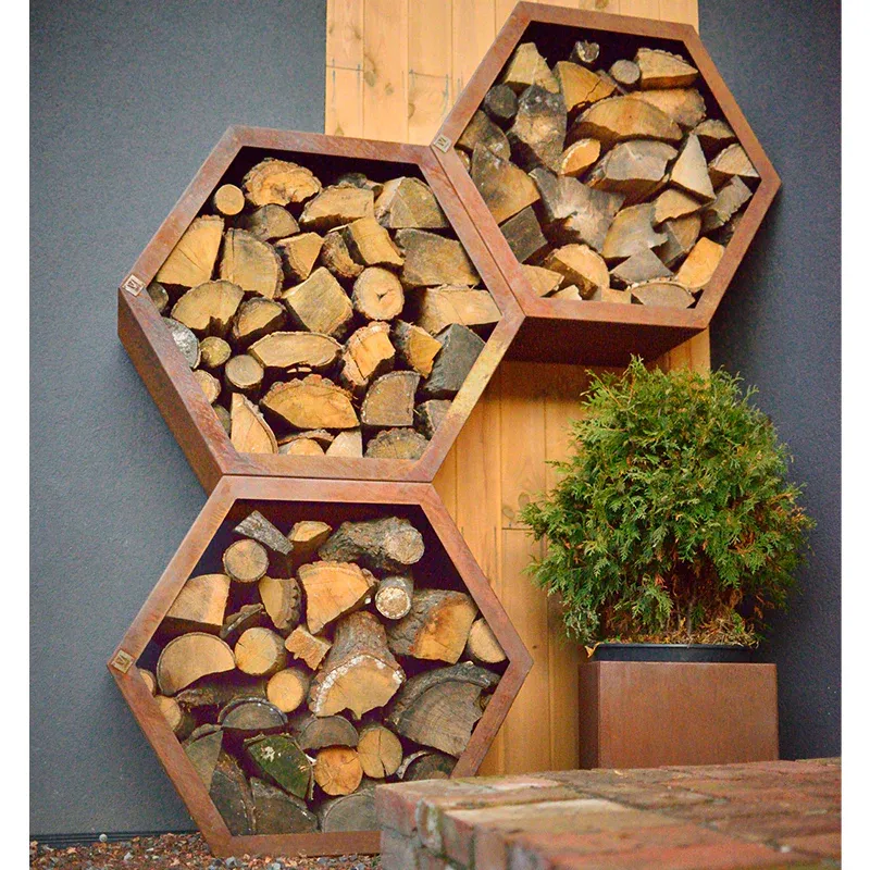 Maak van je houtopslag een designstatement met de Honni! Deze honingraatvormige houtopslag van 2 mm dik cortenstaal combineert functionaliteit en stijl in één modulair systeem. Zet ‘m los neer of breid uit door meerdere units aan elkaar te koppelen en creëer jouw unieke opstelling.