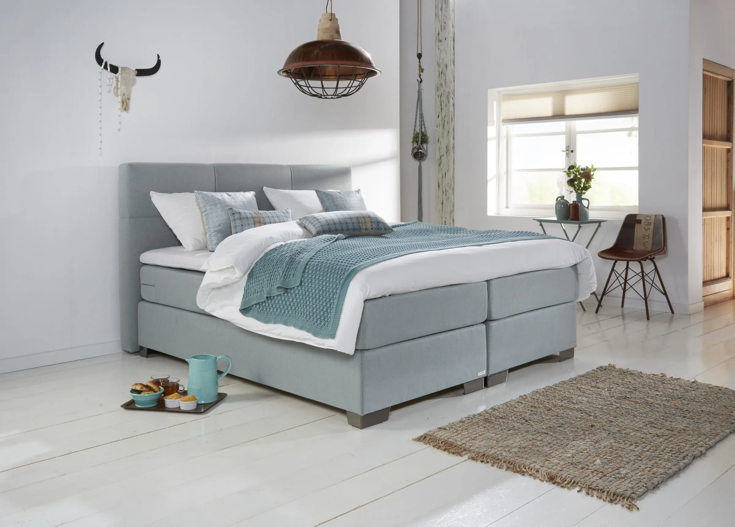 Das Jasmine Boxspring ist ein stilvolles Boxspringbett, das bis ins kleinste Detail unvergleichliche Klasse ausstrahlt. Du kannst zwischen der elektrischen und der flachen Version des Boxsprings wählen. Du kannst dir das Boxspringbett auch ganz nach deinem Geschmack zusammenstellen. Du wählst u.a. die Farbe, die Matratze und die Beine. So kannst du dieses stilvolle Boxspringbett zu deinem ganz eigenen Stil machen.