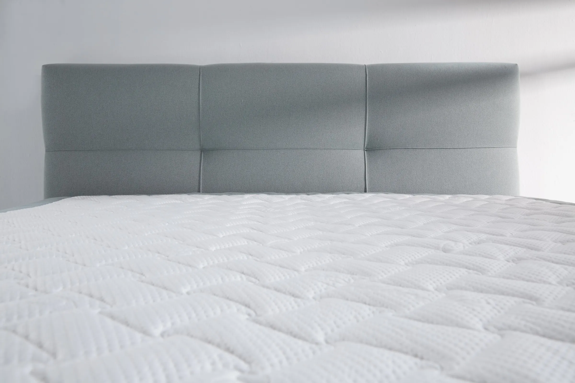 Das Kopfteil dieses Bettes ist gepolstert und hat ein genähtes, aber dennoch schlichtes Design. Dieses Design ist dezent und zeitlos und macht dieses Boxspringbett zu einem echten Hingucker in jedem Schlafzimmer. Das Kopfteil ist +/- 115 cm hoch und +/- 14 cm dick.