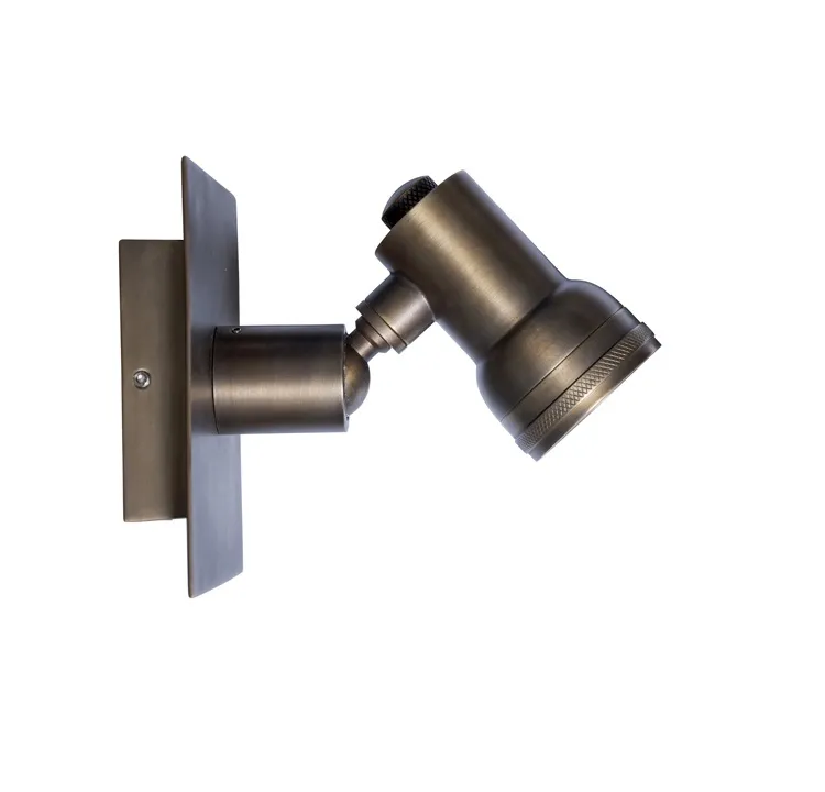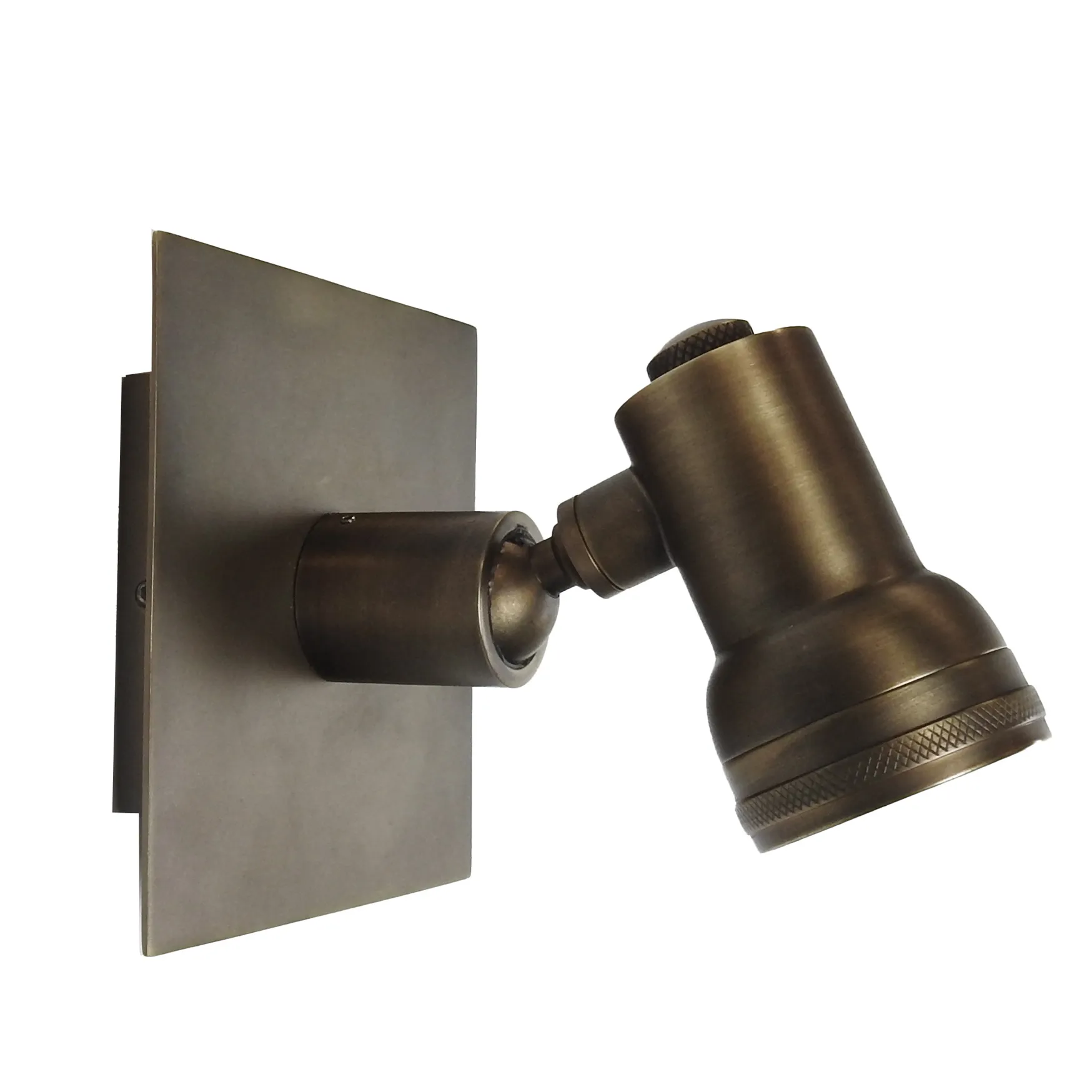 Deze klien koperen spot kun je gemakkelijk in de juiste stand zetten door het draaiende gewricht (kogelscharnier). Het wandplaatje is vierkant en meet 12cm bij 12cm. De diepte van de lamp is 17cm. De spot is geschikt voor een LED GU11 lampje (GU10 35mm), goed verkrijgbaar online en in bouwmarkten.
