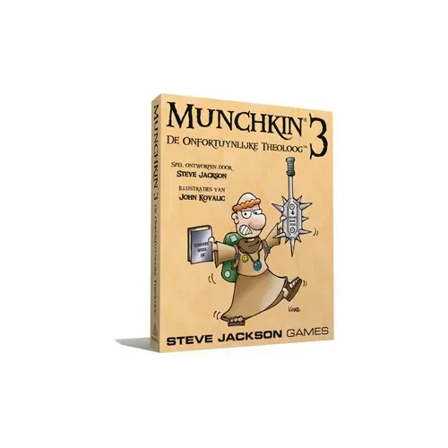 Munchkin 3: De Onfortuynijke Theoloog (116 kaarten) bevat een geheel nieuw ras: Gnoom en een nieuwe klasse: Bard. Vecht tegen Manneken Pis, de Kwade Made of de Oude Taart in blik. Drink het Onverschilligheidsdrankje of hanteer de Stinksokken, en laat je tegenstander zien wie de machtigste is.