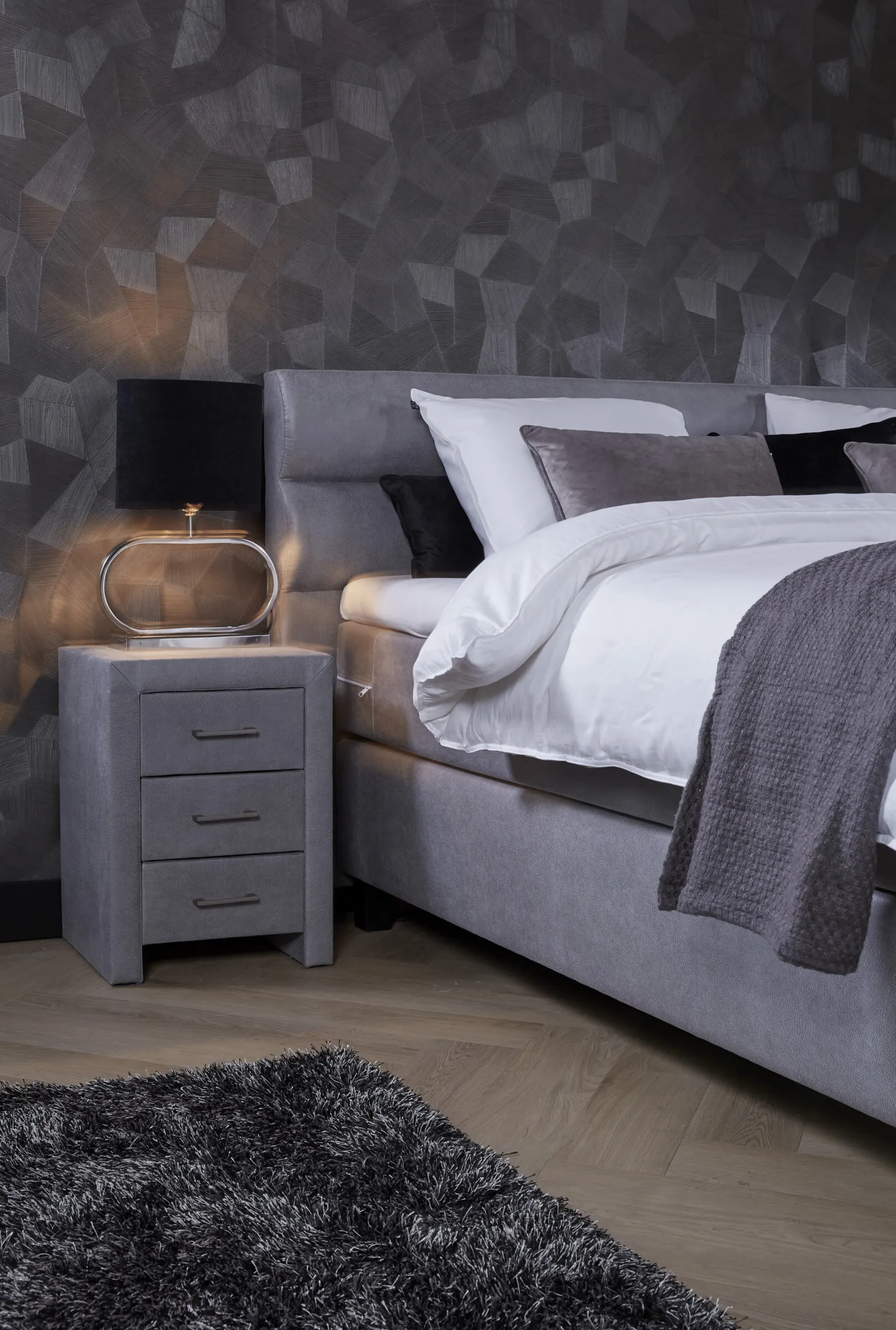 Dit nachtkastje heeft dankzij de stoffering een rustige, stijlvolle uitstraling. Het perfecte accessoire voor naast uw bed. Het praktische ontwerp met liefst drie ruime lades zorgt ervoor dat het nachtkastje meer dan genoeg opbergruimte heeft. U kiest zelf de kleur van dit nachtkastje. In ons assortiment vindt u een groot aantal kleuren. Dit assortiment vindt u naast de afbeelding van het nachtkastje. Zo kiest u het nachtkastje dat het beste bij uw wensen past. Het nachtkastje is 60cm hoog, 45cm breed en 40cm diep.