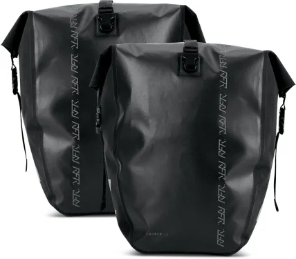De RFR Tourer 10 is meer dan de doorsnee fietstas. Met 10 liter volume in elke tas neem je zomaar 20 liter mee op de voor- of achterdrager. Dat is lekker volladen bij de supermarkt! Daarnaast hebben we een uitneembaar compartiment van neopreen bedacht, waarin kwetsbare spullen extra beschermd worden. Een gaasstof-vakje voorkomt dat je sleutels door de tas gaan slingeren. Regen en donker? Het Waterproof materiaal en de reflecterende applicaties houden de inhoud droog en maken jou beter zichtbaar. En dankzij ons ACID-ophangsysteem zitten ze snel vast en zijn ze net zo snel weer losgemaakt.
