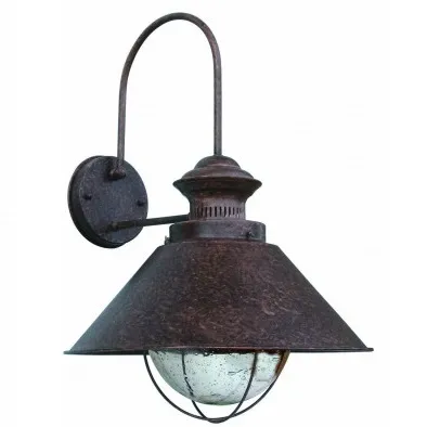 Deze buitenlamp ademt de sfeer van een oude fabriekshal. Het metaal is voorzien van een licht gemêleerde afwerking in fraai roestbruin, waardoor het lijkt alsof de lamp rechtstreeks uit een oude fabriek komt. Het glas aan de onderkant van de lamp is voorzien van kleine bubbeltjes, wat zorgt voor een meer klassieke uitstraling.